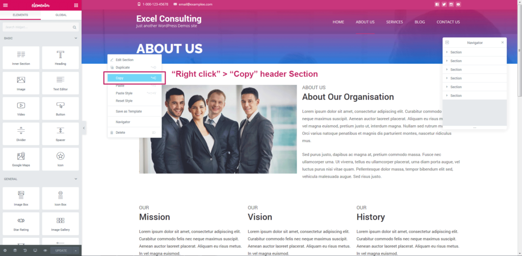 Step 5. Repeat the process to copy/paste the footer section.